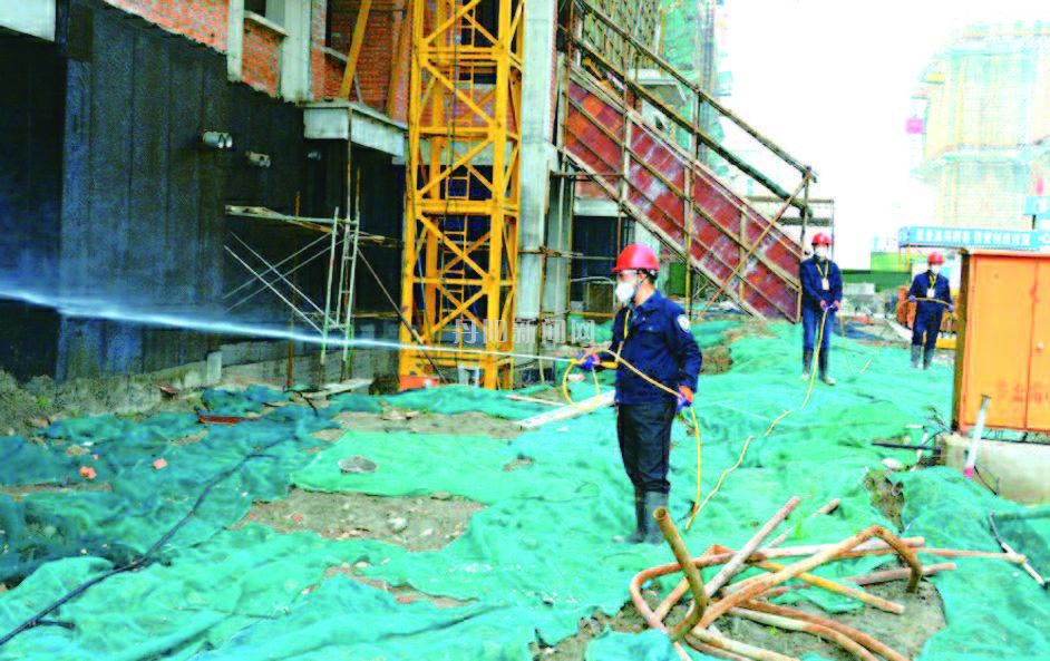 為加強白蟻防治,控制白蟻危害,保證城市房屋的安全,市白蟻防治所近期加強了對城市新建房屋的白蟻預防和老舊房屋的白蟻檢查與滅治。圖為該所工作人員在一新建小區(qū)噴灑白蟻預防藥。